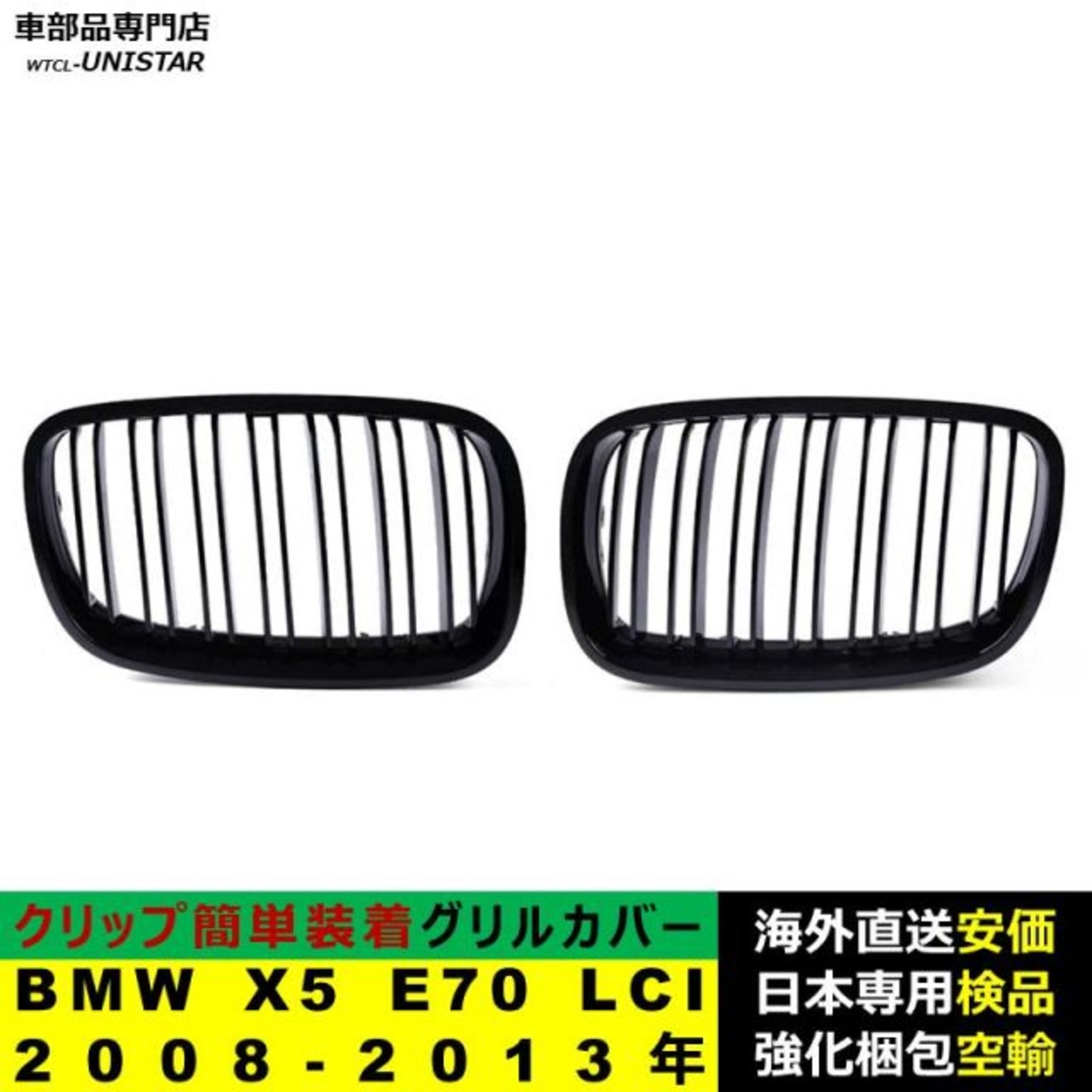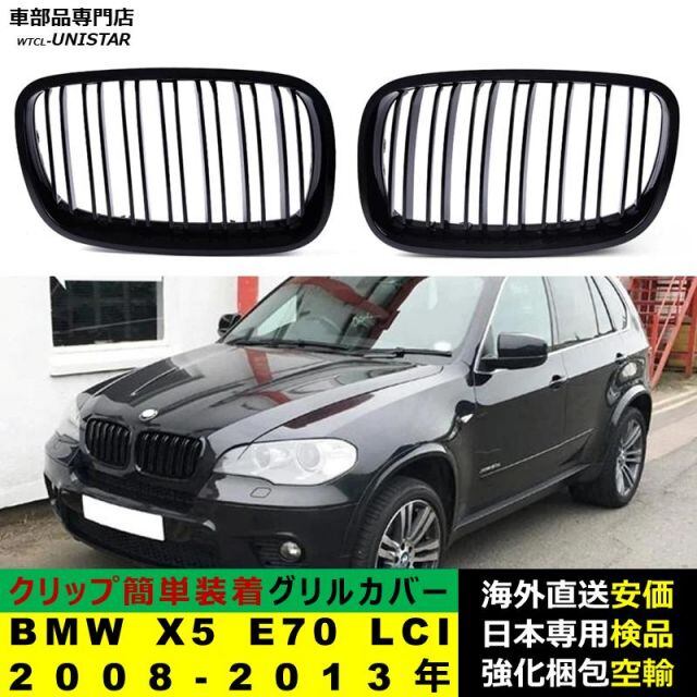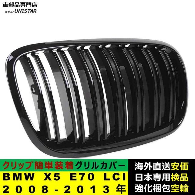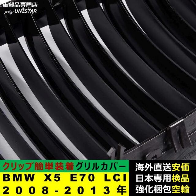 BMW X5 E70 LCI 2008-2013年適用 フロント グリル キドニーグリル バンパー トリム カバー スラット ストラップ Mスタイル M Sports Mスポーツ ABS製 | unistarcar