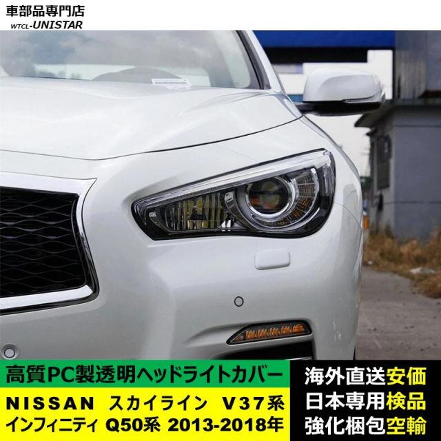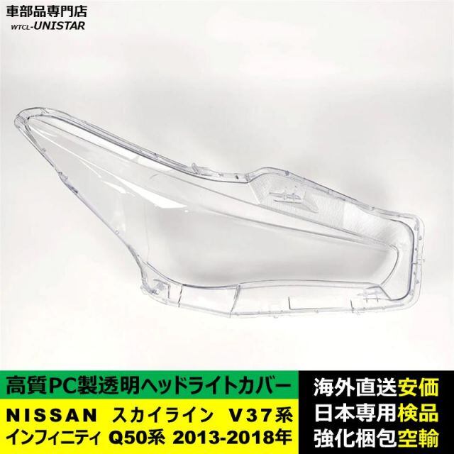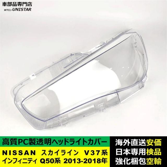 商品名:NISSAN スカイライン V37系 インフィニティ Q50系 2013-2018年 適用 ヘッドライトカバー ヘッドランプ透明レンズ ランプシェード高質PC製