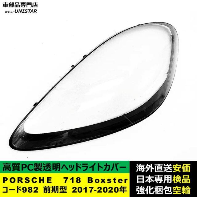 商品名:PORSCHE ポルシェ 718 Boxster コード982 前期型 2017-2020年 適用 ヘッドライトカバー ヘッドランプ透明レンズ ランプシェード高質PC製