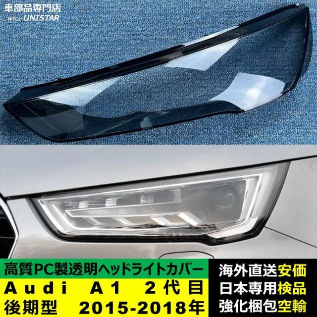 ヘッドライトカバー 互換品 Audi A1 2代目 後期型 2015-2018年 適用 ヘッドランプ 透明レンズ ランプシェード 高質PC製