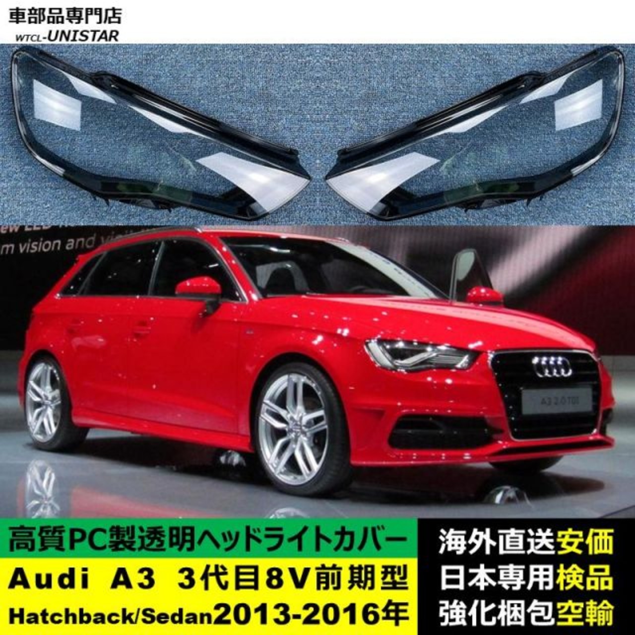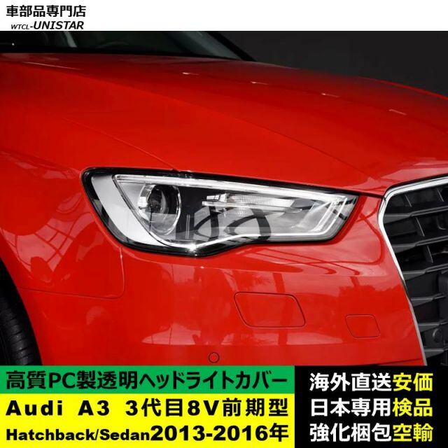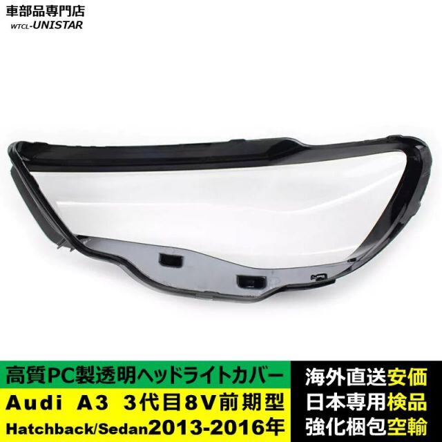 商品名:Audi A3 3代目 8V 前期型 Hatchback Sedan 2013-2016年 適用 ヘッドライトカバー ヘッドランプ透明レンズ ランプシェード高質PC製