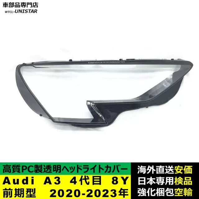 商品名:Audi A3 4代目 8Y 前期型 2020-2023年 適用 ヘッドライトカバー ヘッドランプ透明レンズ ランプシェード高質PC製
