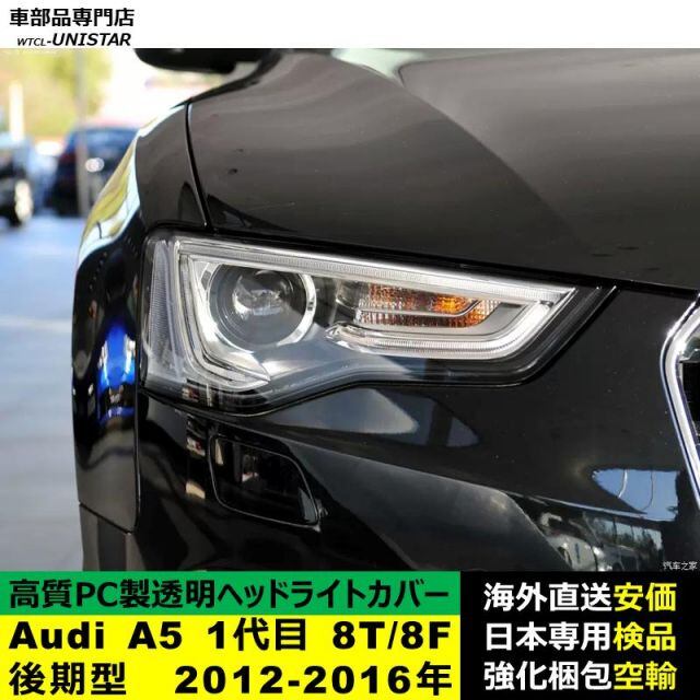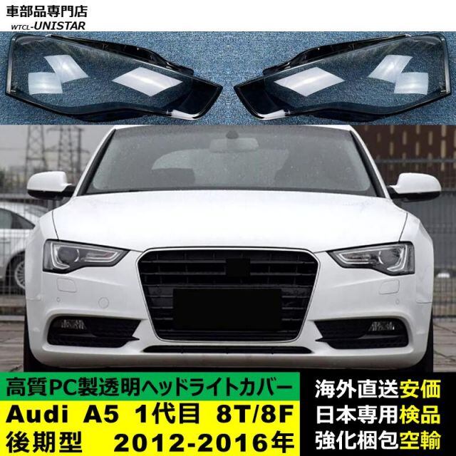 商品名:Audi A5 1代目 8T/8F 後期型 2012-2016年 適用 ヘッドライトカバー ヘッドランプ透明レンズ ランプシェード高質PC製