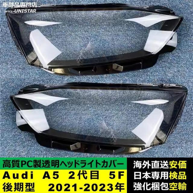 商品名:ヘッドライトカバー 互換品 アウディ Audi A5 2代目 5F 後期型 2021-2023年 適用 ヘッドランプ透明レンズ ランプシェード高質PC製