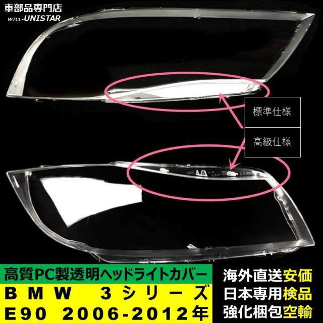 商品名:BMW 3シリーズ E90 2006-2012年 適用 ヘッドライトカバー ヘッドランプ透明レンズ ランプシェード高質PC製