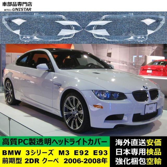 商品名:BMW 3シリーズ M3 E92 E93 前期型 2DR クーペ 2006-2008年 適用 ヘッドライトカバー ヘッドランプ透明レンズ ランプシェード高質PC製