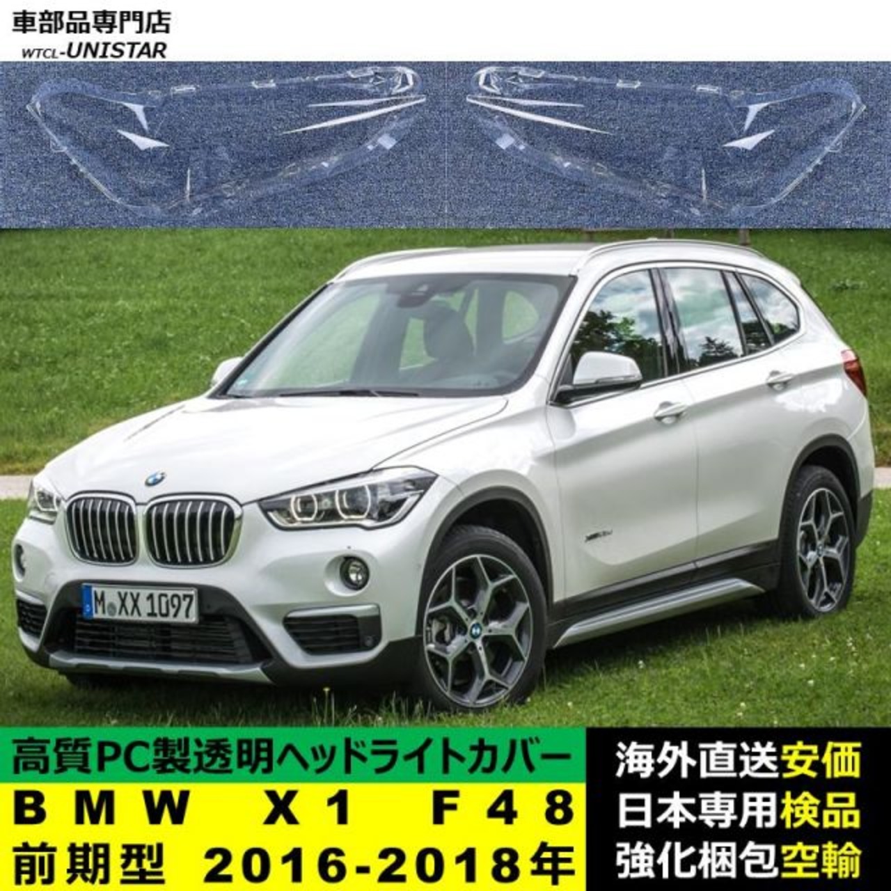 商品名:BMW X1 F48 前期型 2016-2018年 適用 ヘッドライトカバー ヘッドランプ透明レンズ ランプシェード高質PC製