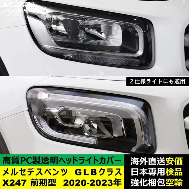 商品名:ヘッドライトカバー 互換品 メルセデスベンツ X247 GLBクラス 前期型 2020-2023年 適用 ヘッドランプ 透明レンズ ランプシェード 高質PC製