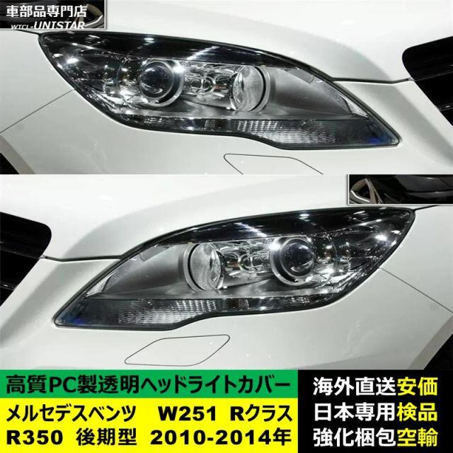 商品名:メルセデスベンツ W251 Rクラス R350 後期型 2010-2014年 適用 ヘッドライトカバー ヘッドランプ透明レンズ ランプシェード高質PC製
