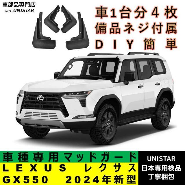 商品名:マッドガード 汎用品 汚れ防止 LEXUS レクサス GX550 2024年新型 適用 マッドフラップ アクセサリー フロント リア ホイール フェンダー 1台分セット