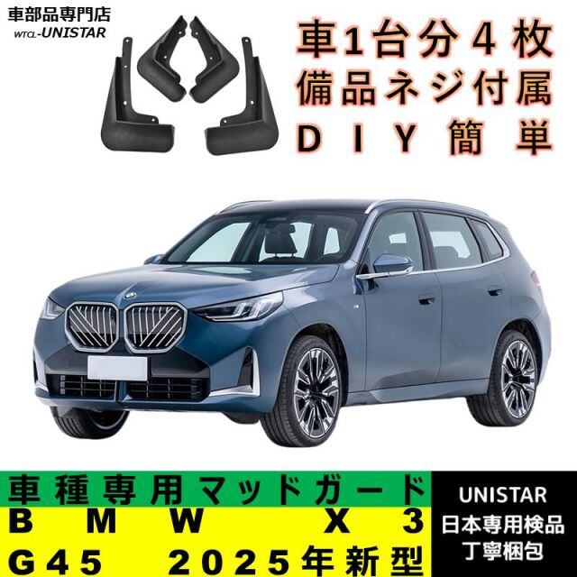 商品名:マッドガード 汎用品 汚れ防止 BMW X3 G45 2025年新型 適用 マッドフラップ アクセサリー フロント リア ホイール フェンダー 1台分セット