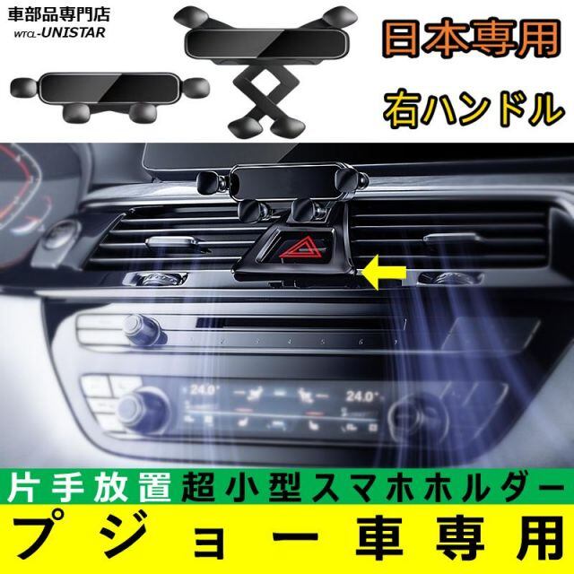 商品名:スマホホルダー プジョー 日本車専用 右ハンドル 車 スマホケース 簡単取付 吹出口 小型 重力感知 ハンズフリー 収納 車種専用座面 安全運転
