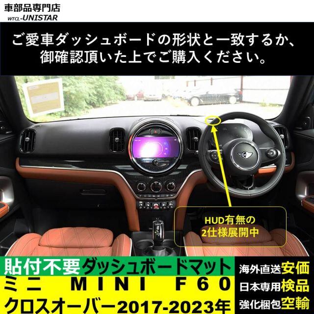 商品名:MINI F60 ミニクロスオーバー 2017-2023年 適用 ダッシュボード マット 汎用 日焼け防止 暑さ対策 反射防止 安全運転 高質PU革 ベルベット製