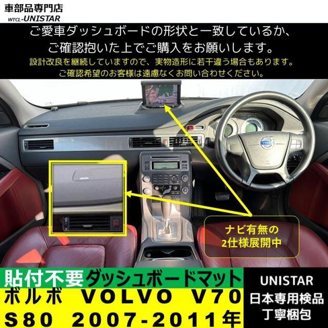 商品名:ボルボ VOLVO V70 S80 2007-2011年 適用 汎用品 ダッシュボードマット 反射防止 日焼け防止 安全運転 高質PU革製 ベルベット製
