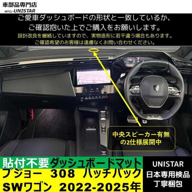 プジョー PEUGEOT 308 ハッチバック 308SW ワゴン 2022-2025年 適用 汎用品 ダッシュボードマット 反射防止 日焼け防止 安全運転 高質PU革製 ベルベット製 | unistarcar