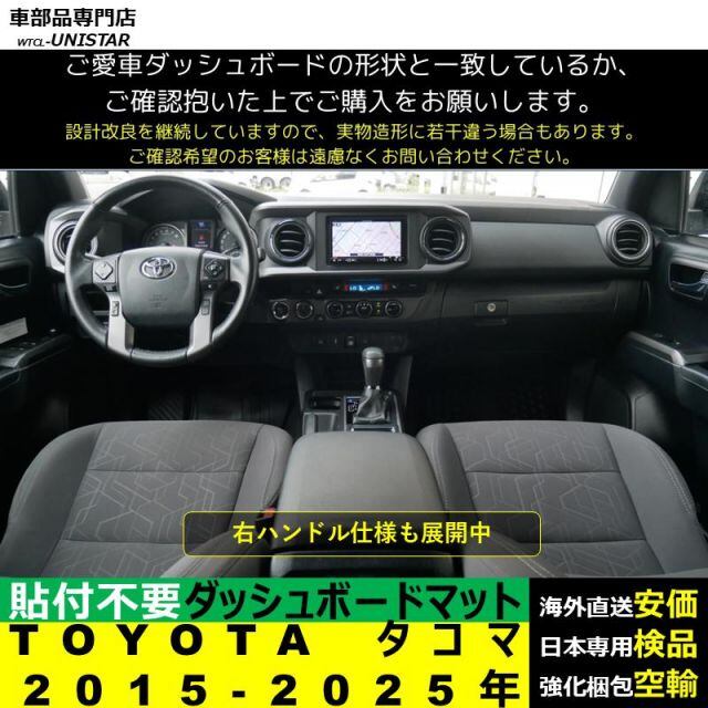 商品名:TOYOTA タコマ RHD LHD 2015-2025年 適用 汎用品 ダッシュボードマット 反射防止 安全運転 高質PU革 ベルベット製