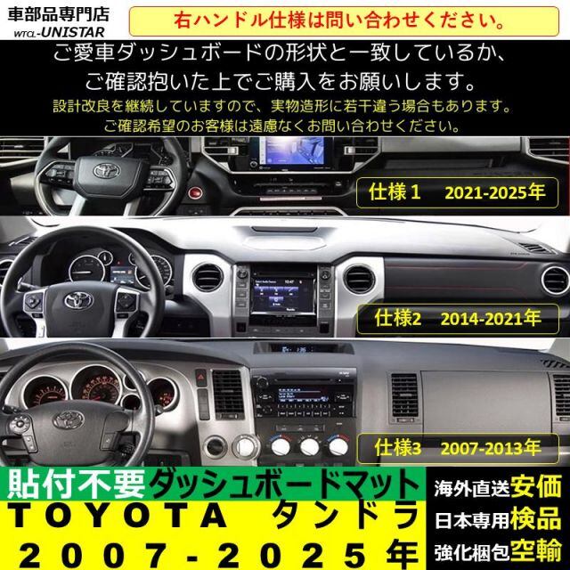 商品名:TOYOTA タンドラ RHD LHD 2007-2025年 適用 汎用品 ダッシュボードマット 反射防止 安全運転 高質PU革 ベルベット製