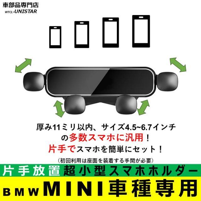 スマホホルダー BMW MINI ミニクーパー F65 F66 F67 U25 J05 J01 簡単取付 おしゃれ 自動車 超小型 重力感知 ハンズフリー 収納 車種専用座面 安全運転 | unistarcar