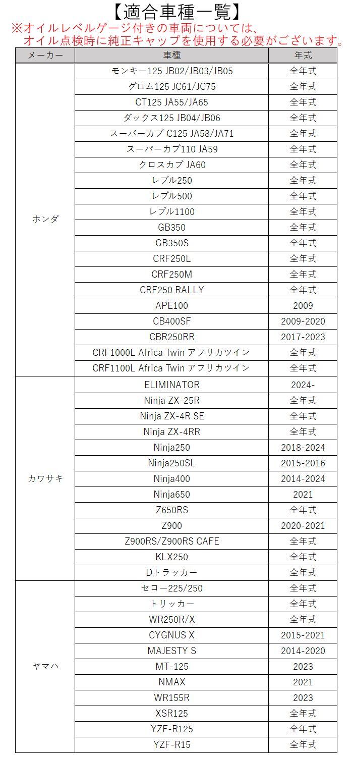 ※オイルレベルゲージ機能はございません。オイルレベルゲージ付きの車両については、オイル点検時に純正キャップを使用し、オイルレベルを確認する必要があります。
