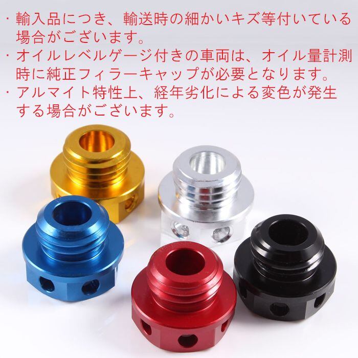 ■備考:・アルマイト加工が美しいアルミ製のオイルフィラーキャップ。 ・全5色展開で愛車のイメージに合わせてご選択ください。