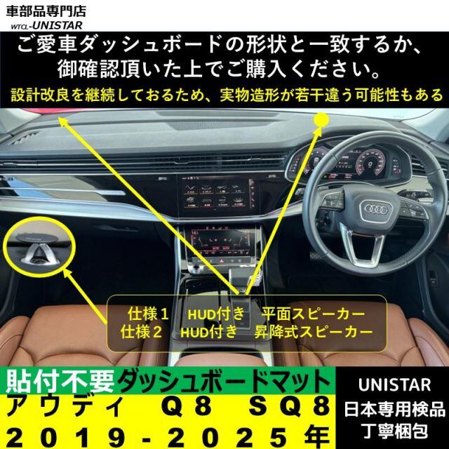 商品名:アウディ Q8 SQ8 2019-2025年 適用 ダッシュボードマット 反射防止 安全運転 高質PU革 ベルベット製