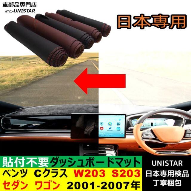 商品名:ベンツ Cクラス W203 S203 セダン ワゴン 右ハンドル 左ハンドル 2001-2007年 適用 ダッシュボードマット 反射防止 安全運転 高質PU革 ベルベット製