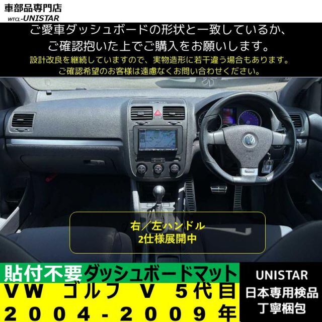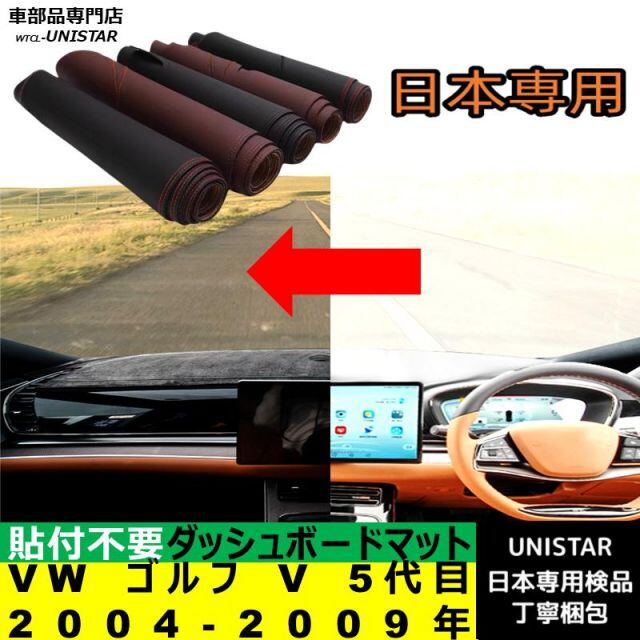 フォルクスワーゲン VW ゴルフ V 5代目 RHD LHD 2004-2009年 適用 ダッシュボード 陽射し フロントガラス 反射 映り込み 軽減 安全運転 高質PU革 ベルベット | unistarcar