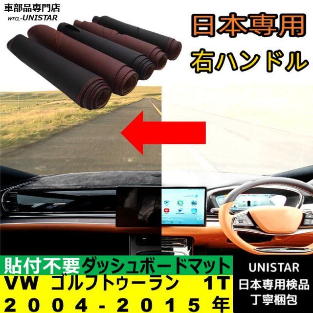 フォルクスワーゲン VW ゴルフトゥーラン 1T 2004-2015年 適用 ダッシュボード 陽射し フロントガラス 反射 映り込み 軽減 安全運転 高品質PU革製 ベルベット | unistarcar