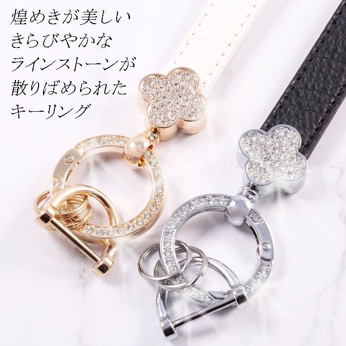 ■商品名:花柄 キーホルダー ラインストーン キーリング ストラップ チャーム レザー 革 おしゃれ かわいい 可愛い 大人 レディース メンズ 鍵 車 ギャル パーツ キラキラ