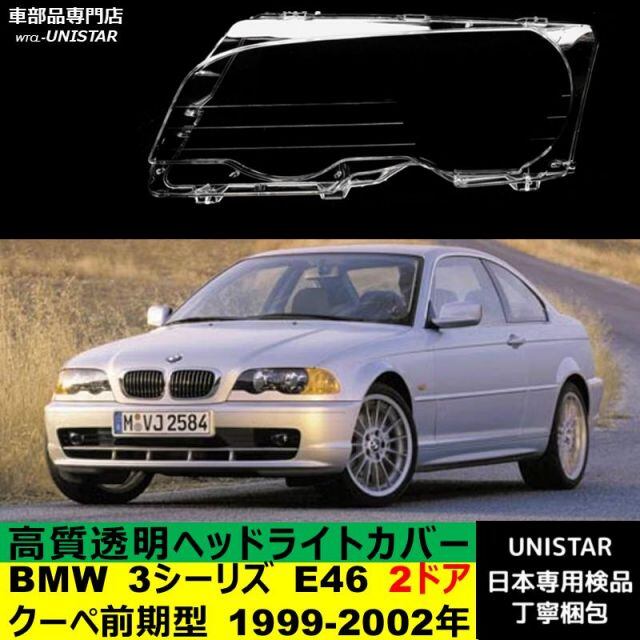 商品名:【互換品】BMW 3シーリズ E46 2ドア クーペ 前期型 1999-2002年 適用 ヘッドライトカバー カバー 破損 交換 黄ばみ 白ぼけ 高質ポリカーボネート製