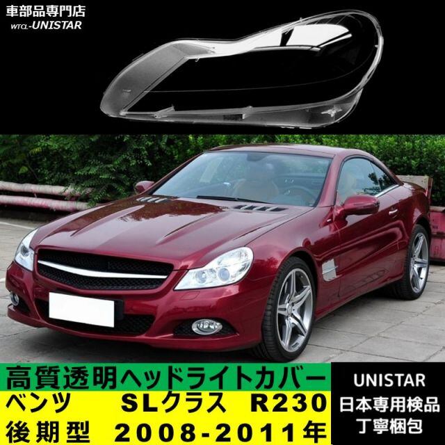 商品名:【互換品】メルセデスベンツ SLクラス R230 後期型 2008-2011年 適用 ヘッドライトカバー ヘッドランプ透明レンズ ランプシェード高質PC製