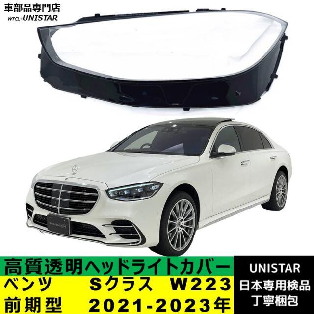 商品名:【互換品】メルセデスベンツ Sクラス W223 前期型 2021-2023年 適用ヘッドライトカバー ヘッドランプ透明レンズ ランプシェード高質PC製