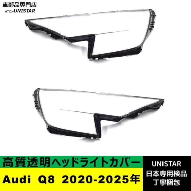 【互換品】アウディ Audi Q8 2020-2025年 適用 ヘッドライトカバー カバー 破損 交換 黄ばみ 白ぼけ 高質ポリカーボネート製