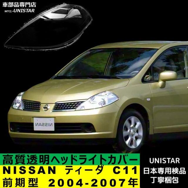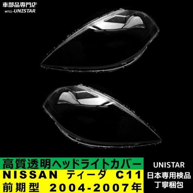 商品名:【互換品】NISSAN ティーダ C11 前期型 2004-2007年 適用 ヘッドライトカバー カバー 破損 交換 黄ばみ 白ぼけ 高質ポリカーボネート製