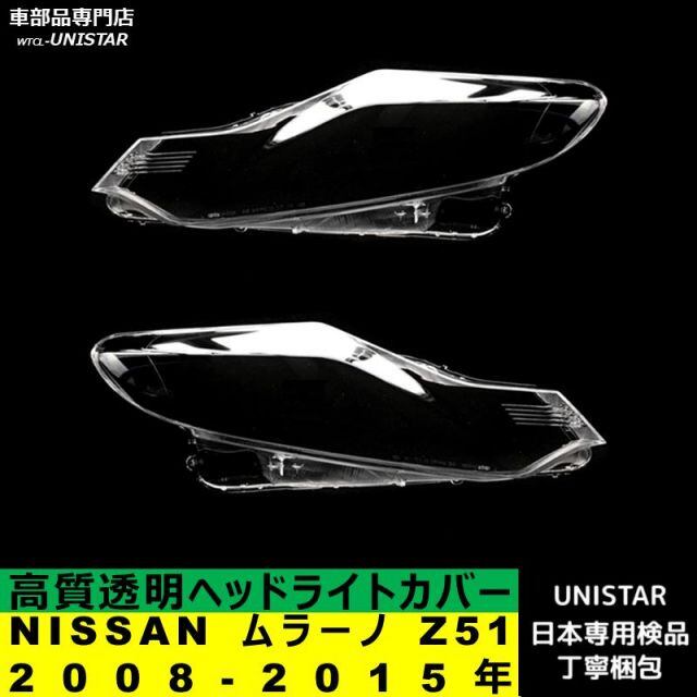 商品名:【互換品】NISSAN ムラーノ Z51 2008-2015年 適用 ヘッドライトカバー カバー 破損 交換 黄ばみ 白ぼけ 高質ポリカーボネート製