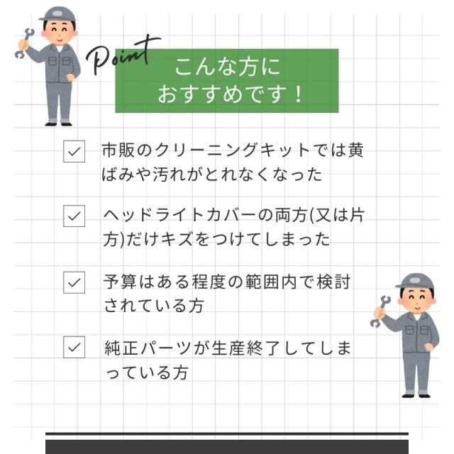 ヘッドライトカバーの取付はノウハウが必要です。施工業者にご依頼できるお客様向けとなっております。