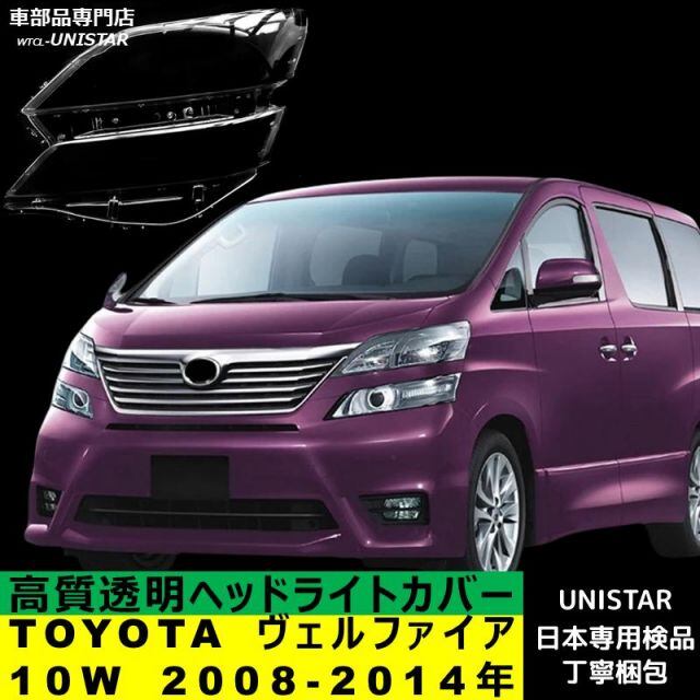 商品名:【互換品】 TOYOTA トヨタ ヴェルファイア 10W 2008-2014年 適用 ヘッドライトカバー カバー 破損 交換 黄ばみ 白ぼけ 高質ポリカーボネート製
