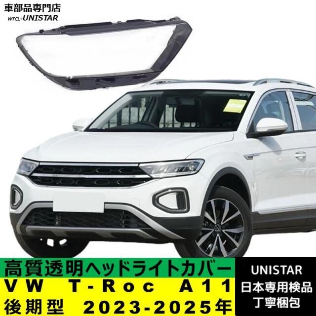 商品名:【互換品】 フォルクスワーゲン VW T-Roc A11 後期型 2023-2025年 適用 ヘッドライトカバー カバー 破損 交換 黄ばみ 白ぼけ 高質ポリカーボネート製