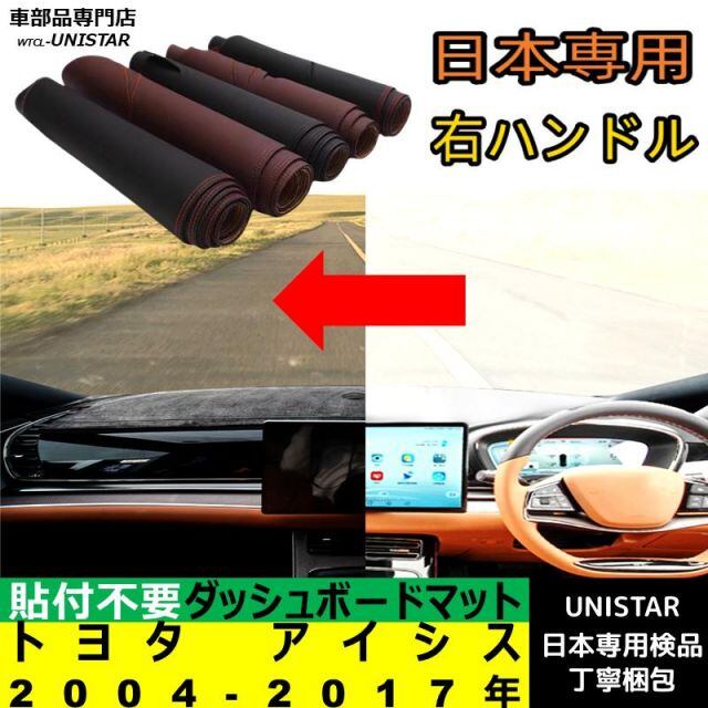 商品名:トヨタ アイシス 2004-2017年 適用 ダッシュボードマット 汎用品 日差し フロントガラス 反射 映り込み 軽減 安全運転 高質PU革 ベルベット製