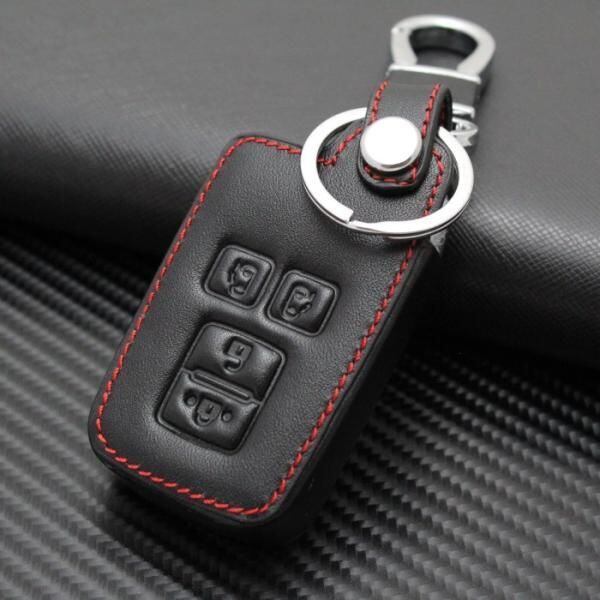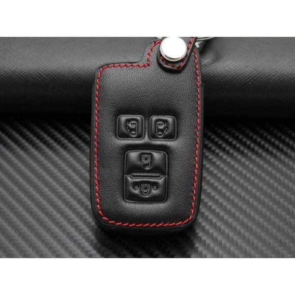 トヨタ 本革 キーケース キーカバー ブラックレザー×レッドステッチ 両側スライド アルファード ヴェルファイア など