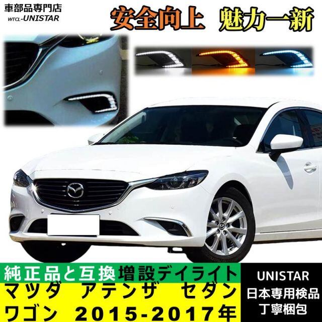 【互換品】マツダ MAZDA6 アテンザ セダン ワゴン 中期 2015-2017年 適合 デイライト LED 増設 LEDデイライト DRL ウインカー 2本セット 被視認 防水 安全運転