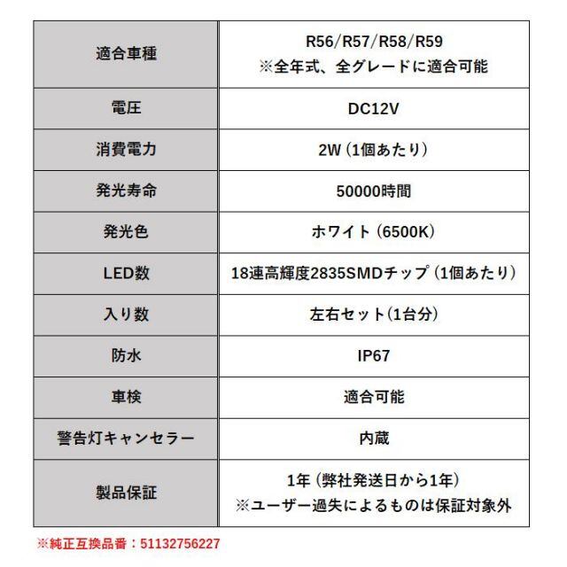 商品名:【互換品】BMW MINI ミニクーパー ナンバー灯 R56 R57 R58 R59 LED キャンセラー内蔵 ライセンスランプ ライト 交換 防水 車検対応 アクセサリー パーツ