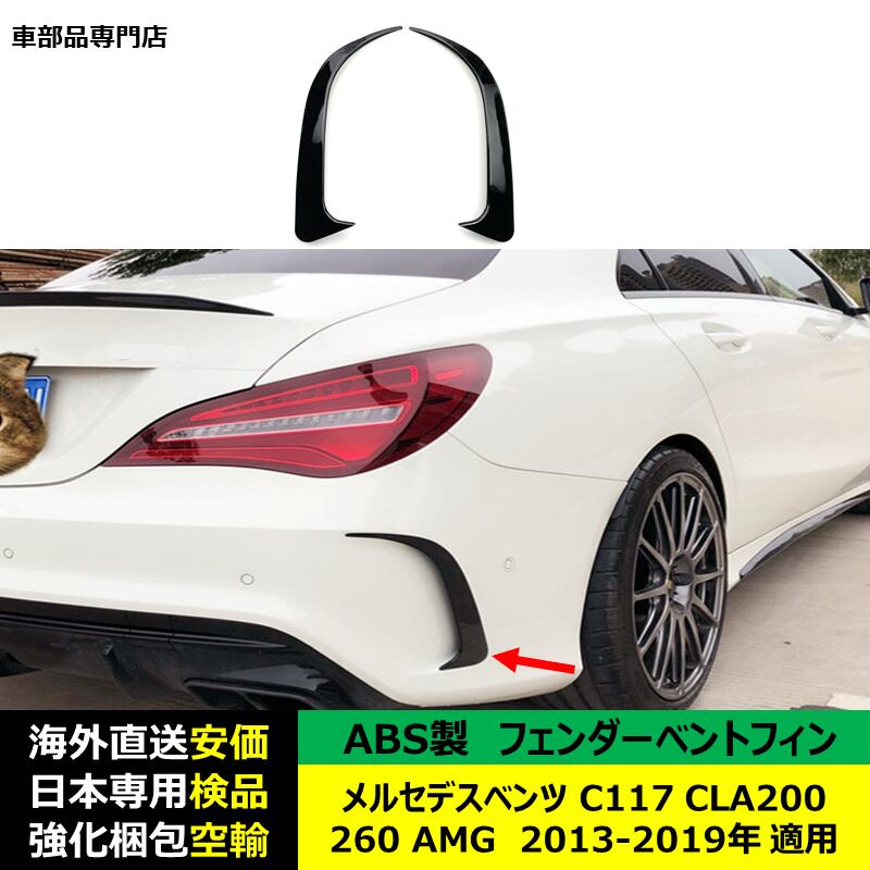 メルセデスベンツ CLA C117 CLA200 260 AMG 2013-2019年 適用 スプリッター スポイラー サイド ウイング リップ エアナイフ エアロパーツ リアバンパーフェンダーベントフィン ABS製 | unistarcar