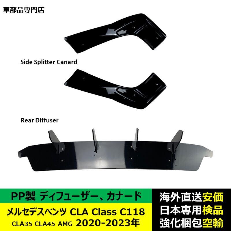 1セット メルセデスベンツ CLA Class C118 CLA35 CLA45 AMG 2020-2023年 適用 リア バンパー ディフューザーサイドスプリッターカナードスポイラーリップ PP製 | unistarcar