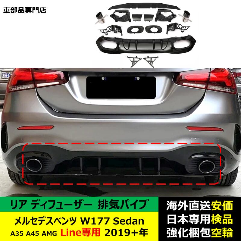 1セット メルセデスベンツW177Sedan A35 A45 AMG Line専用 2019+年 適用 リア バンパー ディフューザー 排気パイプ付き