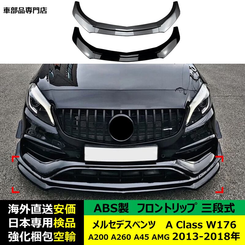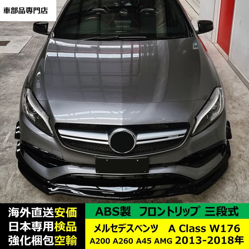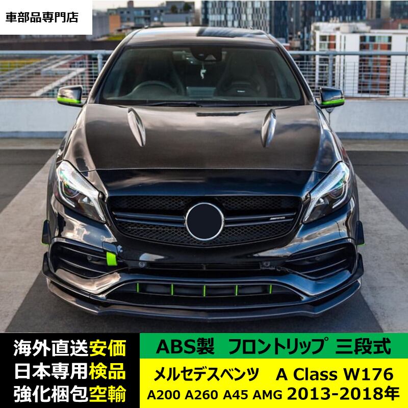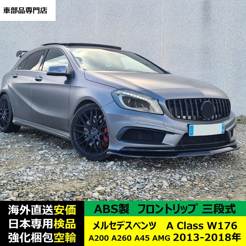 メルセデスベンツ A Class W176 A200 A260 A45 AMG 2013-2018 年 適用 三段式 フロントリップ ガーニッシュ リップカバースポイラー プロテクター キズ防止 ドレスアップ スポイラー ABS製 | unistarcar