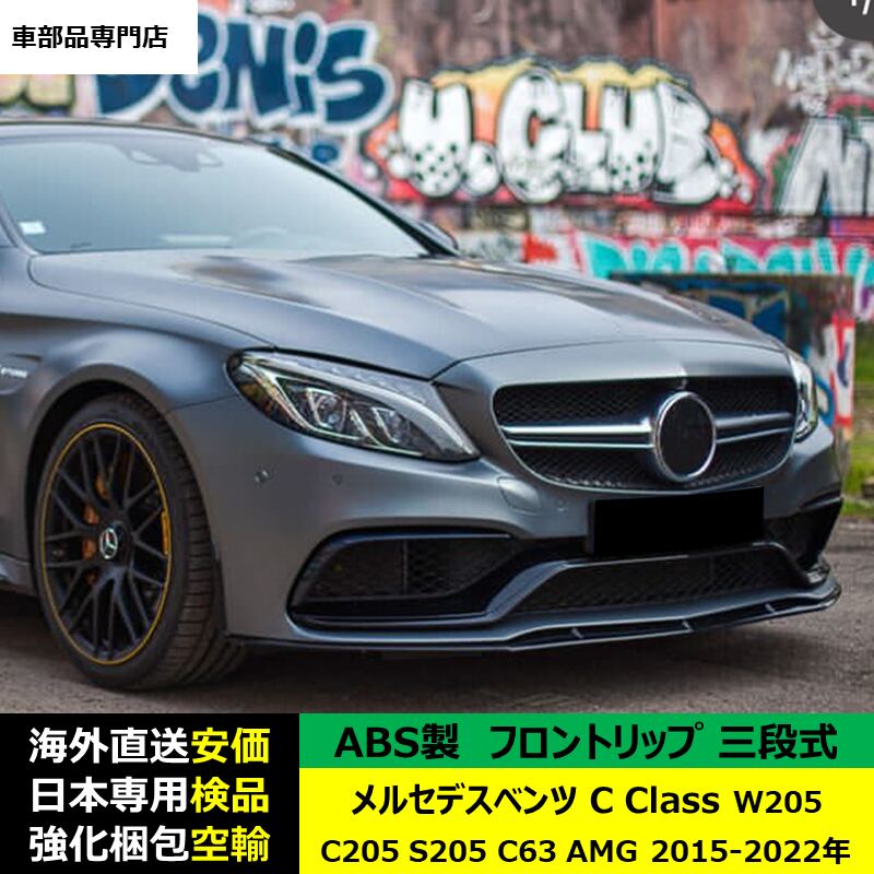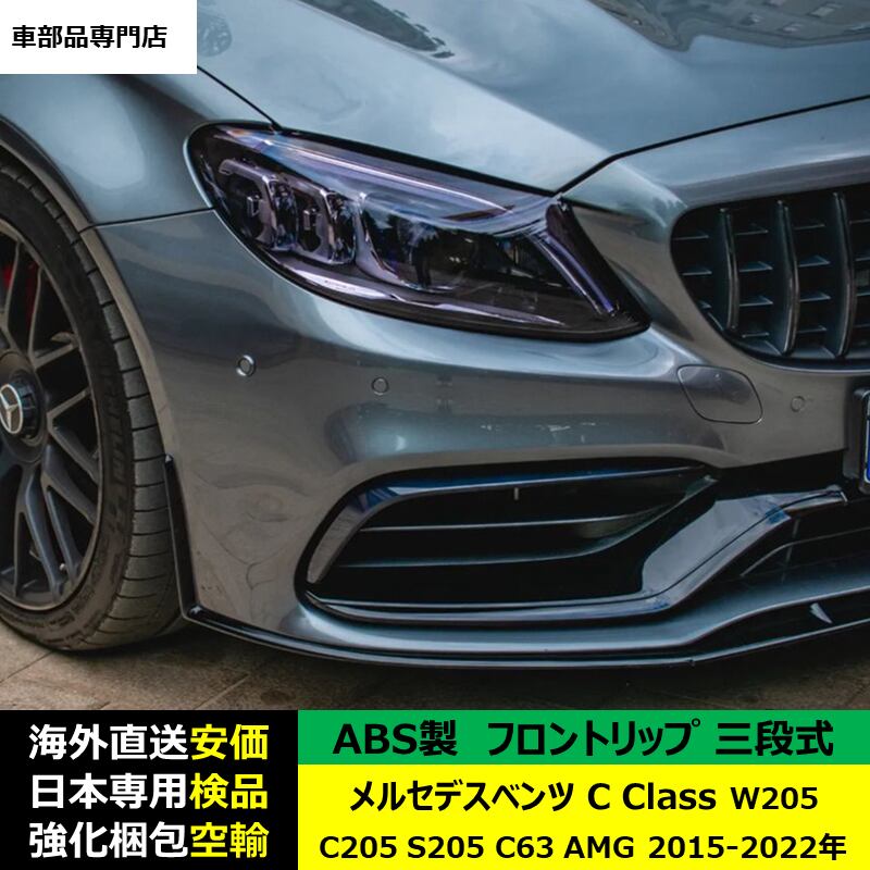 メルセデスベンツ C Class W205 C205 S205 C63 AMG 2015-2022年 適用 三段式フロントリップ ガーニッシュ リップカバースポイラー プロテクター キズ防止 ドレスアップ スポイラー ABS製 | unistarcar