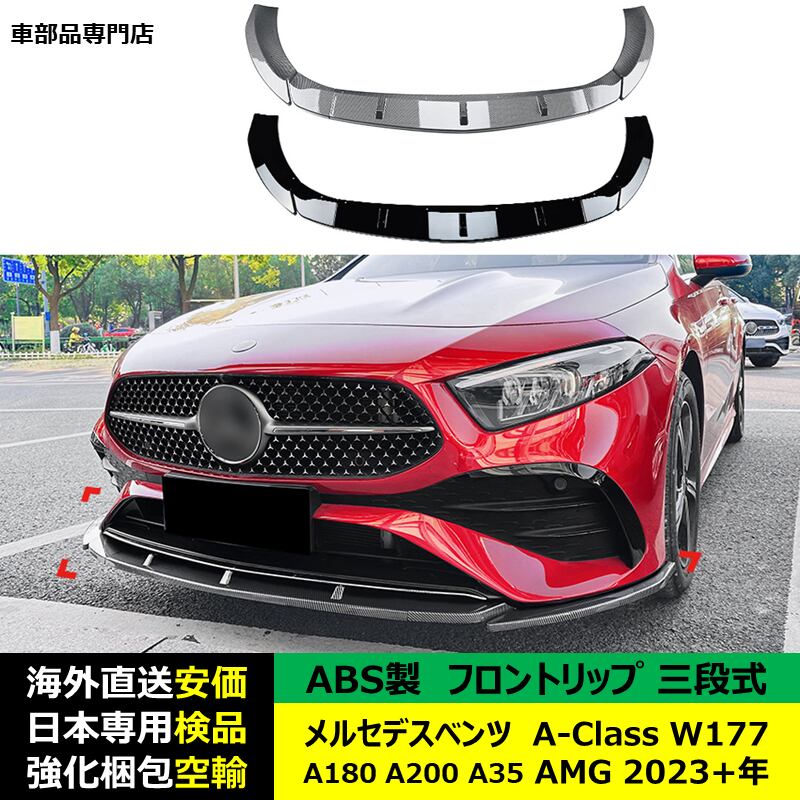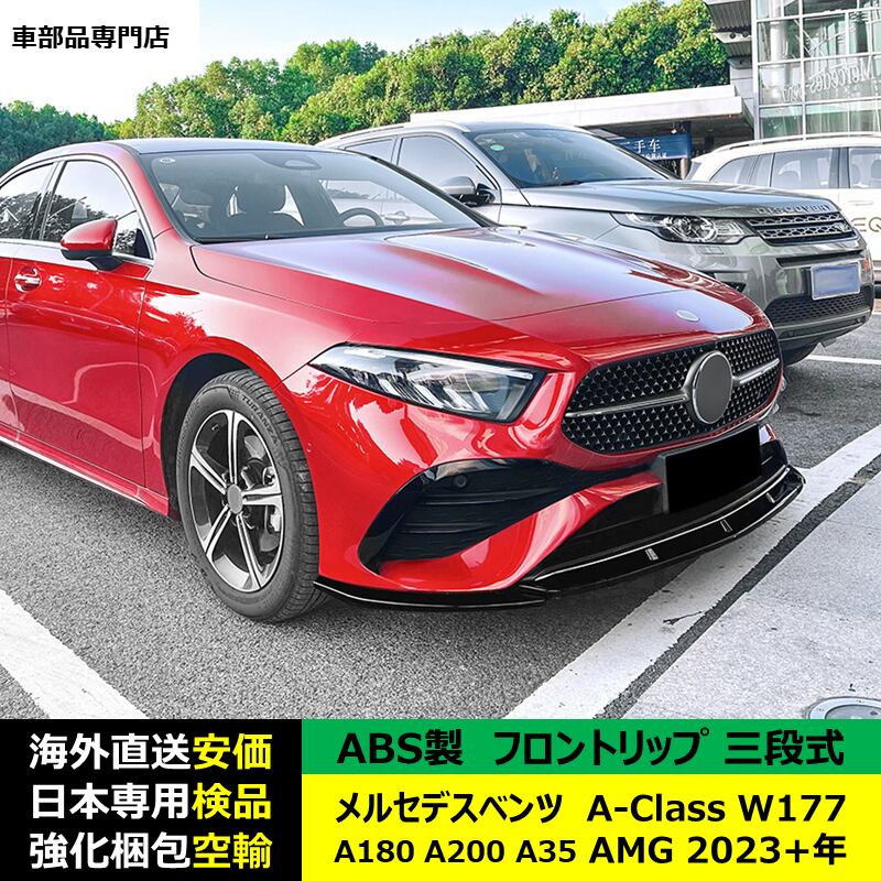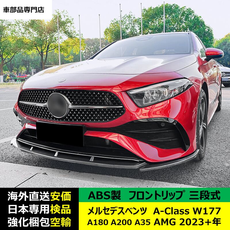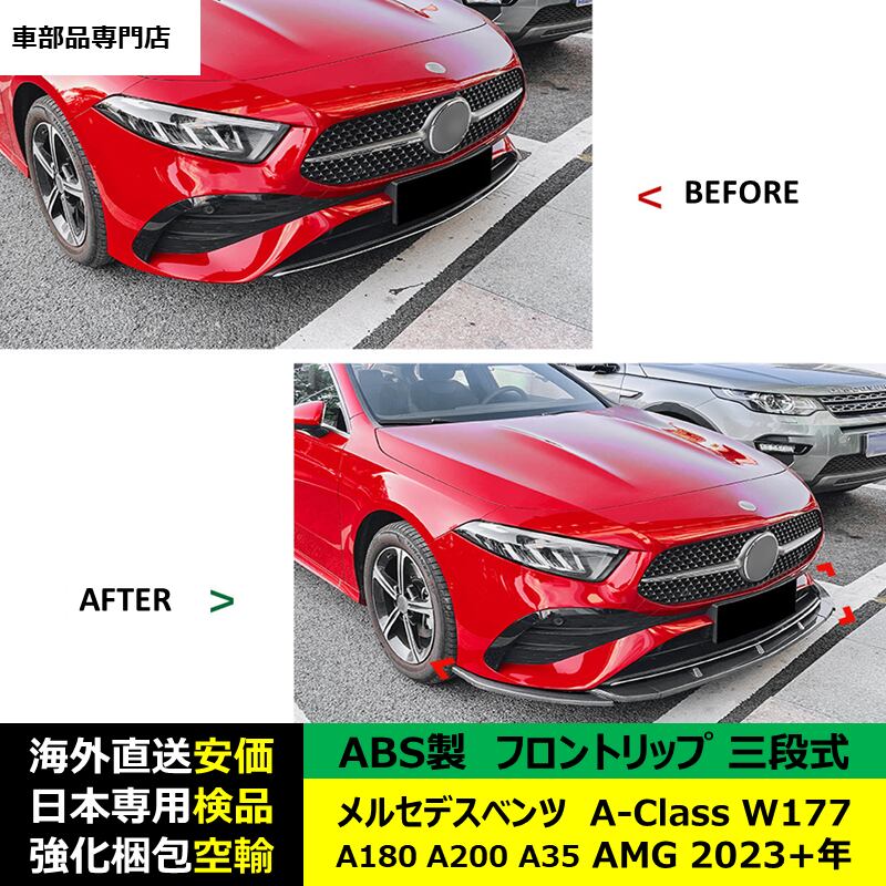 メルセデスベンツ A-Class W177 A180 A200 A35 AMG 2023+年 適用 三段式フロントリップ ガーニッシュ リップカバースポイラー プロテクター キズ防止 ドレスアップ スポイラー ABS製 | unistarcar