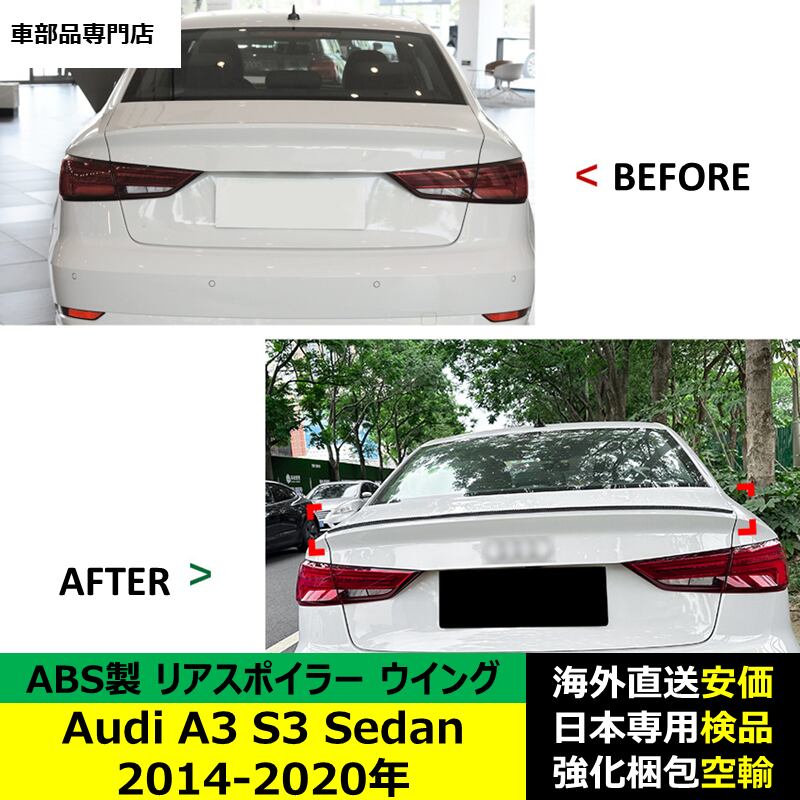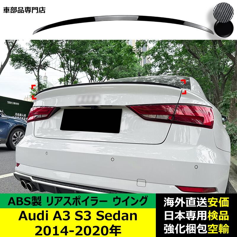 Audi A3 S3 Sedan 2014-2020年リアスポイラー リアウイング トランクルーフエアロパーツ ガーニッシュ ドレスアップ ABS製
