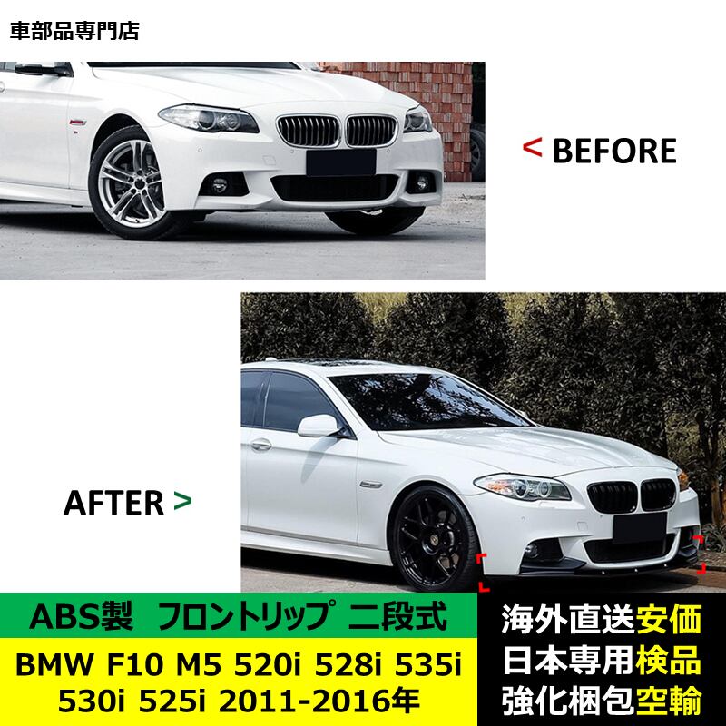 BMW F10 M5 520i 528i 535i 530i 525i M Sport 2011-2016年 適用 二段式フロントリップ ガーニッシュ リップカバースポイラー キズ防止 スポイラー ABS製 | unistarcar
